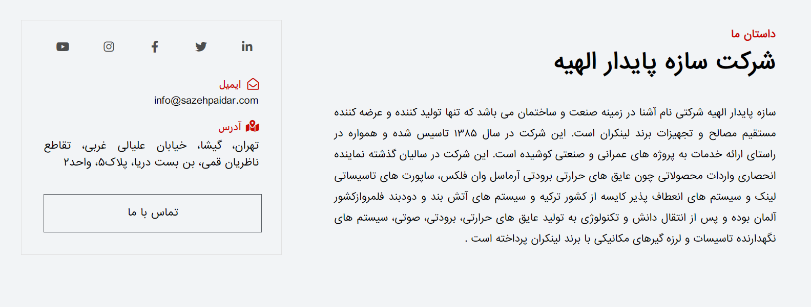 شرکت دانش بنیان سازه پایدار الهیه با بهرهگیری از پیشرفتهترین دستگاههای روز دنیا، محصولاتی در سه گروه ساپورتهای تاسیساتی مدولار، لرزهگیرهای مکانیکی و عایقهای الاستومری حرارتی، برودتی و صوتی تولید مینماید. چشمانداز نوآورانه، استقبال از ایدههای جدید و تمایل به همکاری تحقیقاتی و صنعتی با مراکز پیشتاز در حوزه فناوری و اساتید و دانشگاهیان، همواره سیاست غالب مدیران ارشد سازه پایدار الهیه بوده است. از این رو، در نظر دارد تا از دانش و تجربه اساتید و همچنین نبوغ، استعداد و انرژی جوانان و نخبگان دانشگاهی این مرز و بوم در جهت شکوفایی ایشان و حل نیازها و چالشهای صنعت خود بیش از پیش تعامل سازندهای را با دانشگاه و دانشگاهیان ایجاد نماید.