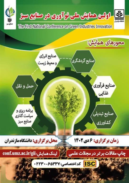به اطلاع میرساند در راستای ارتقا و ایجاد صنایع متضمن توسعه پایدار، سلسله همایشهای ملی با عنوان نوآوری در صنایع سبز توسط دانشکده مهندسی و فناوری دانشگاه مازندران در تاریخ ششم دی ماه با نمایه ISC برگزار خواهد شد.