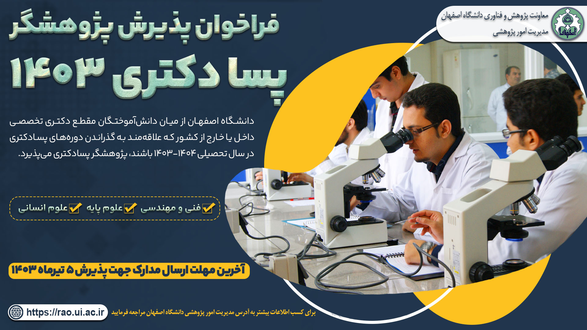 فراخوان پذیرش پسادکترای سال دانشگاه اصفهان